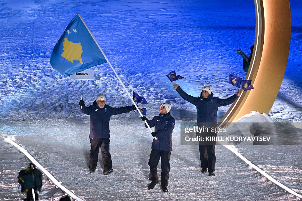 LIVIGNO, ITALY – FEBRUARY 06: Flagbearer Drin Kokaj of Team Kosovo enters with the team into the stadium during the opening ceremony of the Milano Cortina 2026 Winter Olympics at Livigno Snow Park on February 06, 2026 in Livigno, Italy. (Photo by David Ramos/Getty Images)MILAN, ITALY – FEBRUARY 06: A general view as the Olympic rings come together for a fireworks display during the opening ceremony of the Milano Cortina 2026 Winter Olympics at San Siro Stadium on February 06, 2026 in Milan, Italy. (Photo by Andreas Rentz/Getty Images)MILAN, ITALY – FEBRUARY 06: Kirsty Coventry, President of the IOC, gives a speech during the opening ceremony of the Milano Cortina 2026 Winter Olympics at San Siro Stadium on February 06, 2026 in Milan, Italy. (Photo by Alexander Hassenstein/Getty Images)LIVIGNO, ITALY – FEBRUARY 06: Flagbearer Drin Kokaj of Team Kosovo leads the team in the parade during the opening ceremony of the Milano Cortina 2026 Winter Olympics at Livigno Snow Park on February 06, 2026 in Livigno, Italy. (Photo by Cameron Spencer/Getty Images)LIVIGNO, ITALY – FEBRUARY 06: Flagbearer Drin Kokaj of Team Kosovo leads the team in the parade during the opening ceremony of the Milano Cortina 2026 Winter Olympics at Livigno Snow Park on February 06, 2026 in Livigno, Italy. (Photo by Cameron Spencer/Getty Images)Kosovo’s flag bearer Drin Kokaj (C) parades with members of the delegation during the opening ceremony of the Milano Cortina 2026 Winter Olympic Games in Livigno, northern Italy, on February 6, 2026. (Photo by Kirill KUDRYAVTSEV / AFP via Getty Images)